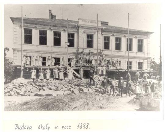 Původní škola z 18. století byla umístěna poblíž kostela a vyučování probíhalo ve dvou třídách. Ke konci 19. století již škola nevyhovovala požadavkům doby , proto se obec rozhodla pro výstavbu školy nové.Rozhodnutím obecní rady byla vykoupena za částku 3000 zlatých usedlost Kláry Salcmanové, č. p. 131. Po zbourání usedlosti byla na jejím místě L.P. 1898 zahájena staviteli Janem a Josefem Hartelovými výstavba školy nové.